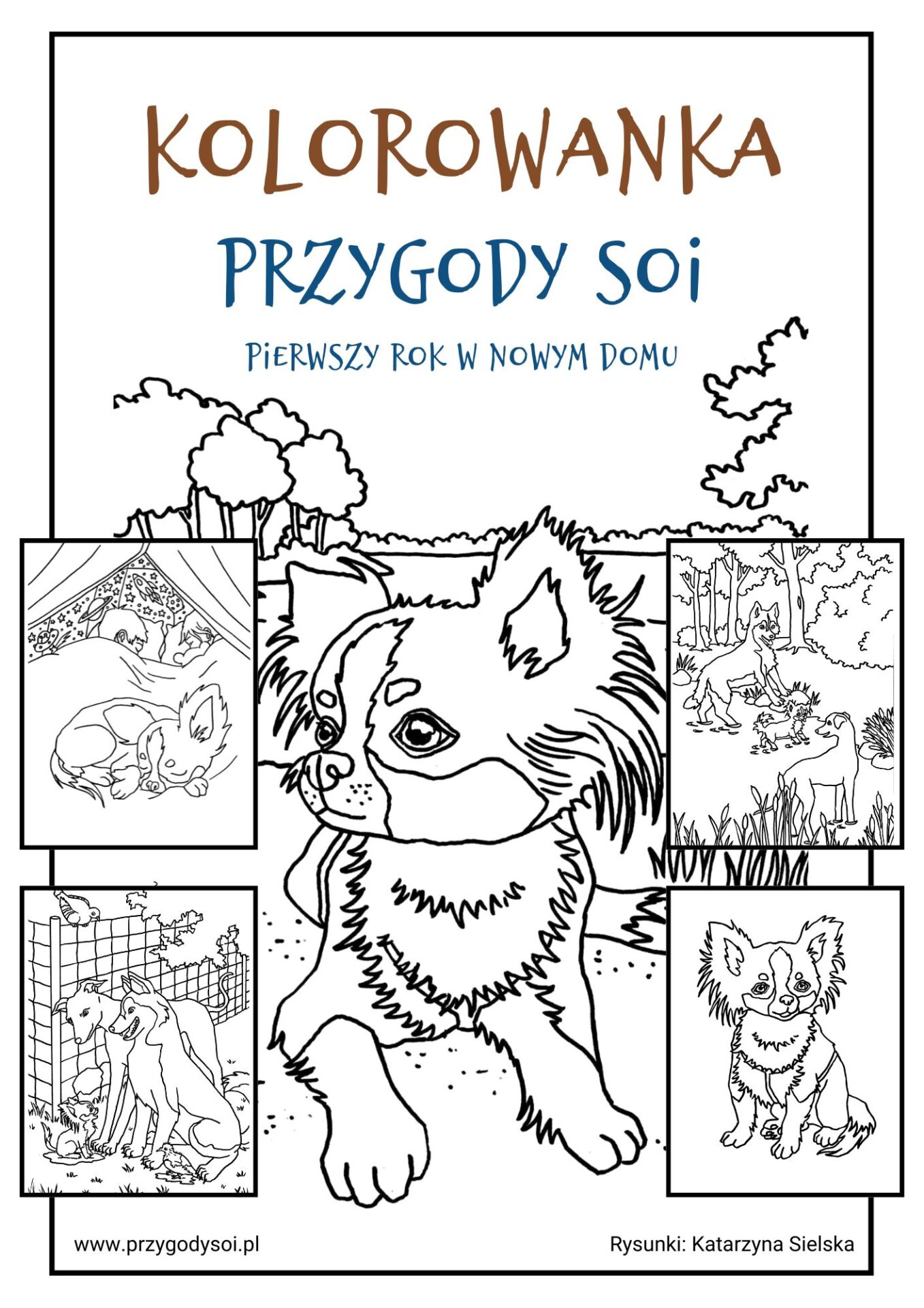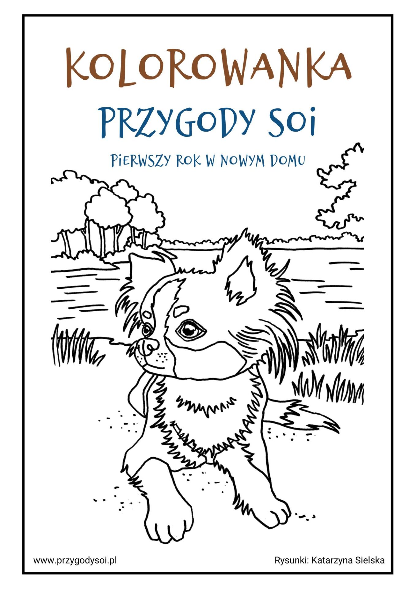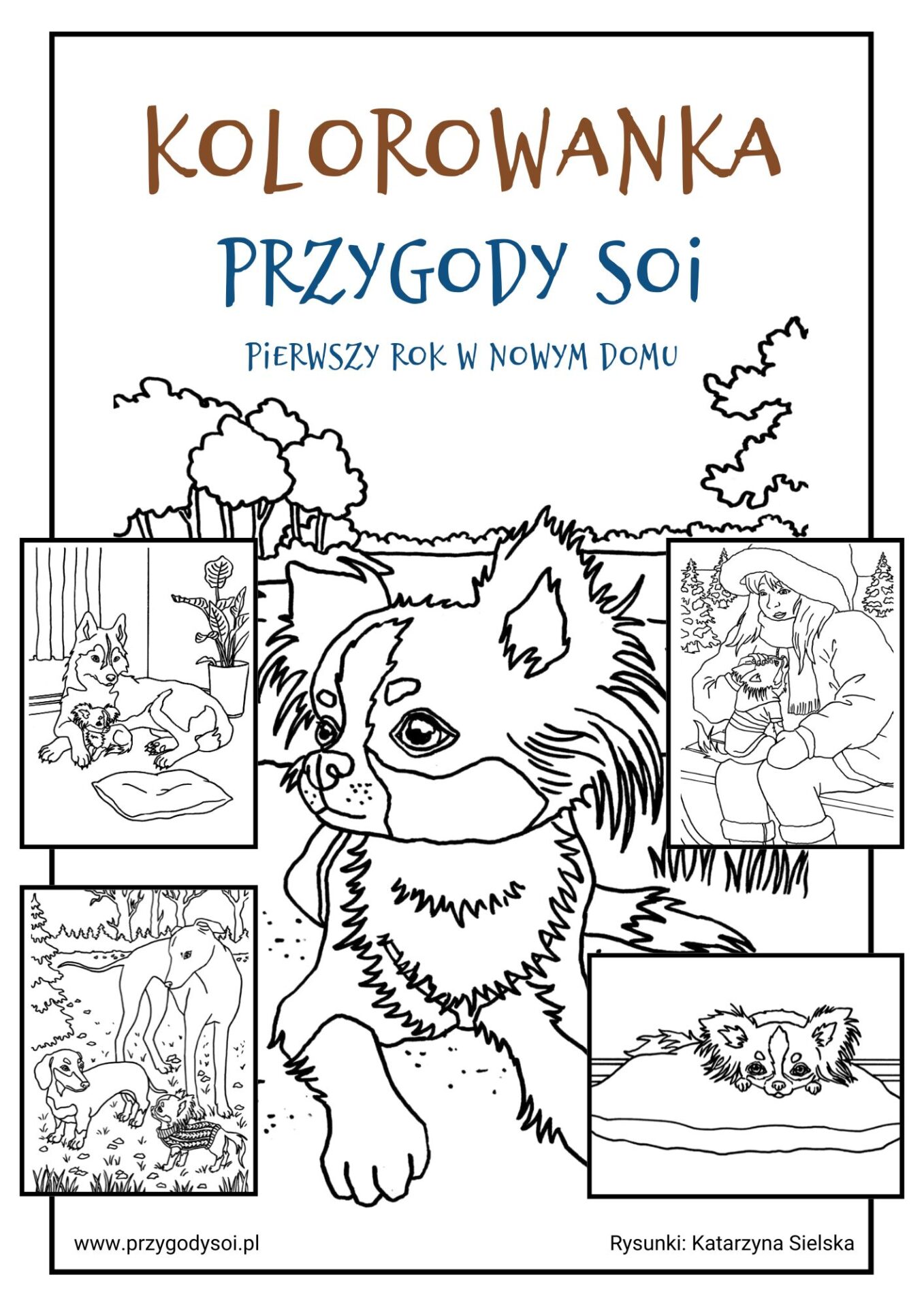 Kolorowanka dla dzieci w formie pdf (wysyłana mailem) przygotowana w oparciu o ilustracje znajdujące się w książce „Przygody Soi. Pierwszy rok w nowym domu”.