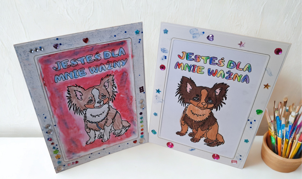Ramki można kupić np. na allegro. Wpisz hasło: „ramki kartonowe” i je znajdziesz. Mnie sprawdza się rozmiar 15 x 21 cm. Przykładowe ramki zobacz TUTAJ. Cena za jedną ramkę wynosi około 3,30 zł. Myślę, że to na tyle nieduży koszt, że można poprosić rodziców o niewielką składkę „na organizację warsztatu”.